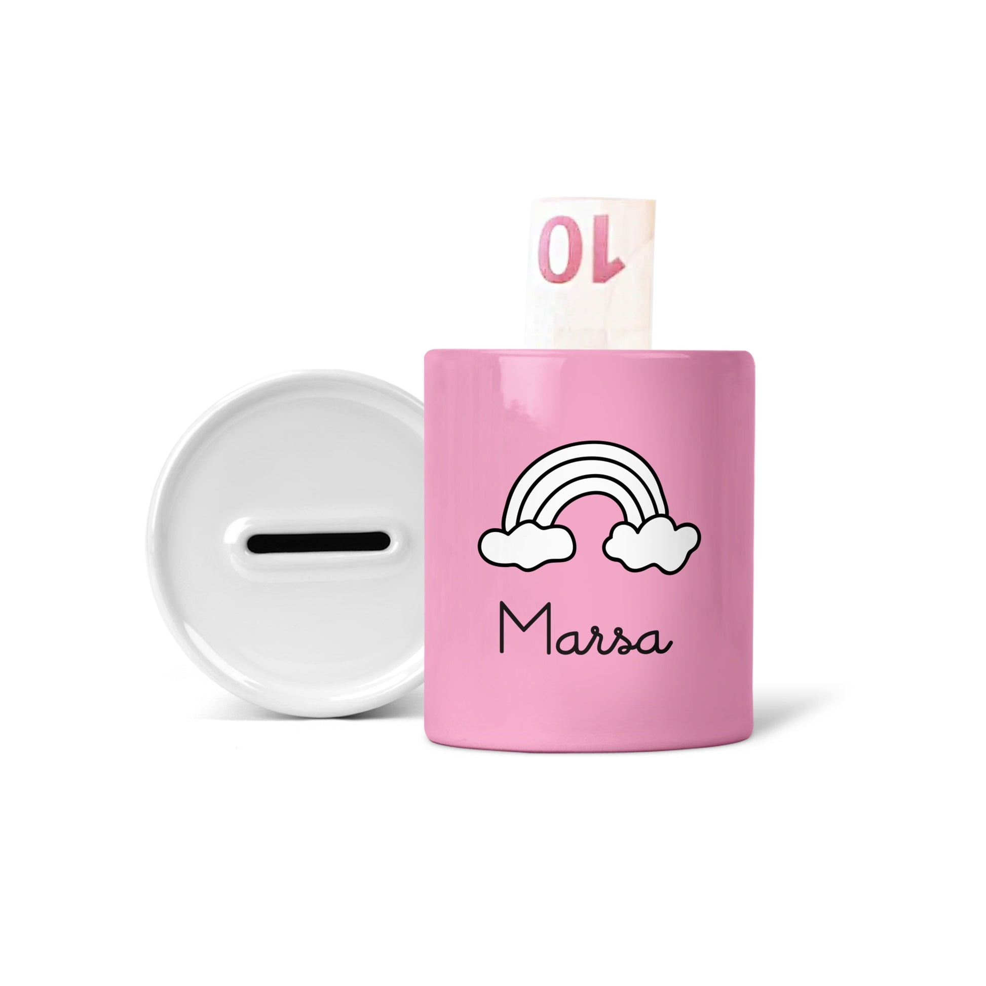Kursimi bëhet argëtues me këtë arkë të personalizuar. Zgjidhni figurën, ngjyrën dhe shtoni emrin për një arkë që e bën çdo kursim një aventurë.