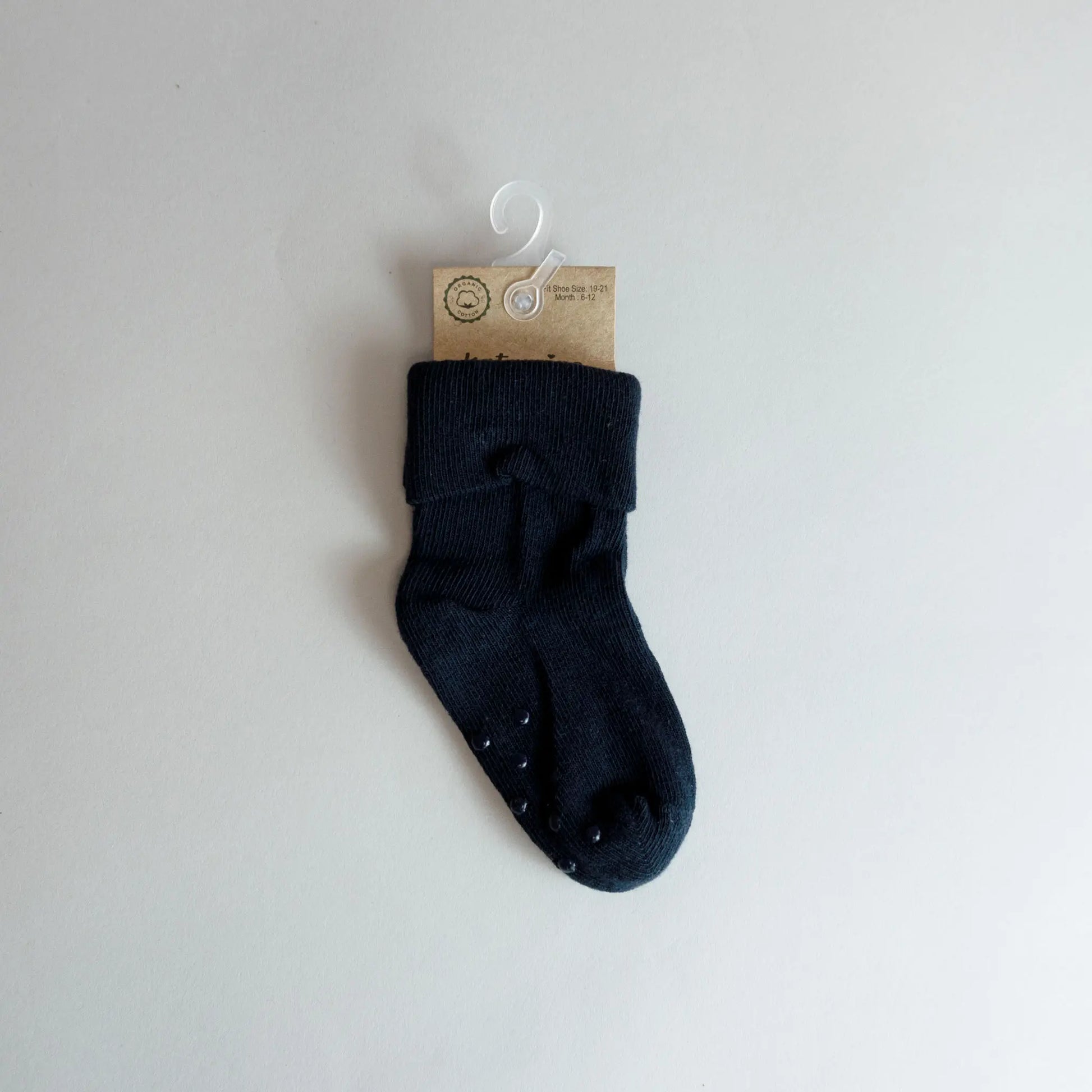 Çorape për fëmijë nga 6 deri në 24 muaj. Me dy ngjyra të ndryshme bardhë dhe zezë. Falë materialit të butë dhe cilësor, ofrojnë rehati dhe ngrohtësi gjatë gjithë ditës.
