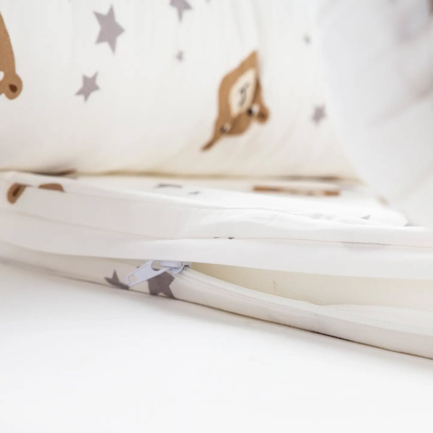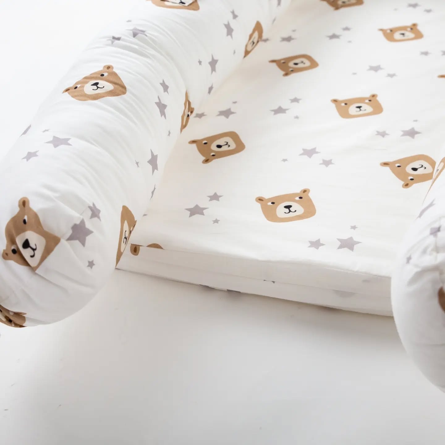 Foleja e bebeve, e njohur edhe si një kapsulë bebesh, është një aksesor komod dhe i gjithanshëm për foshnje, i projektuar për të ofruar një mjedis të sigurt dhe të rehatshëm për të porsalindurit dhe foshnjat e vogla. Këto fole të buta dhe të mbushura zakonisht kanë një hapësirë të sigurt dhe të mbyllur që u lejon foshnjave të pushojnë, të flenë ose të luajnë në një atmosferë të rehatshme dhe si mitra. Foletë tona të bebeve përdoren shpesh për të fjetur bashkë, për të qëndruar pranë barkut të mbikëqyrur, ose si një opsion i lëvizshëm dhe lehtësisht i transportueshëm për prindërit që janë në lëvizje. Ato vijnë në dizajne të ndryshme elegante, me mbulesa të lahet dhe të lëvizshme për mirëmbajtje të lehtë. Ndërsa foletë e bebeve mund të ofrojnë komoditet dhe rehati si për foshnjat ashtu edhe për kujdestarët e tyre, është thelbësore t'i përdorni ato në mënyrë të sigurt, duke ndjekur të gjitha udhëzimet e rekomanduara për të siguruar mirëqenien e foshnjës.