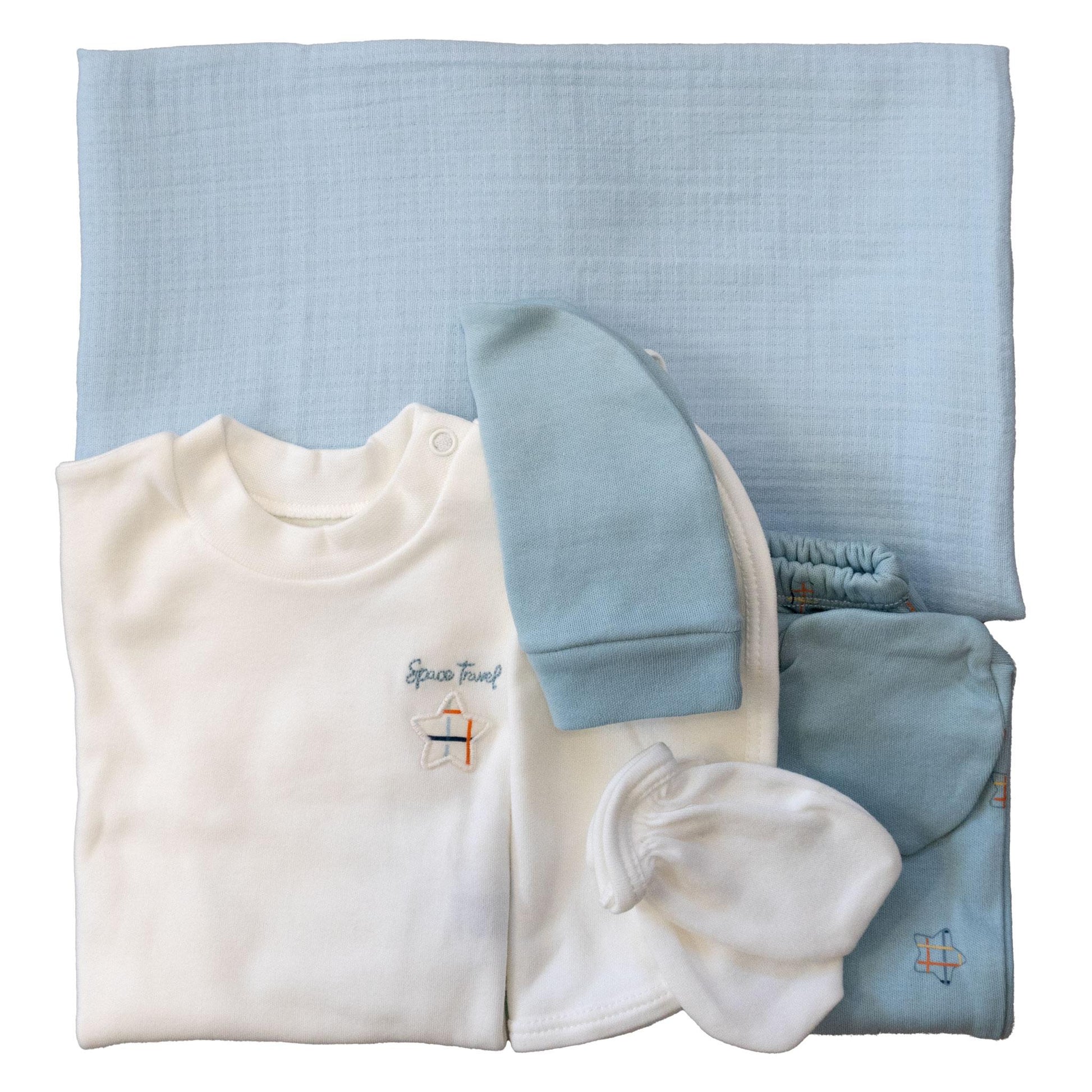 Një dhuratë simpatike me ngjyra që janë të përshtatshme për të vegjëlit tuaj. Kutia përmbanë veshje me material nga pambuku që i bënë të përshtatshme për lëkuren delikate. Po ashtu përmbanë batanijën muslin që do të ju kryej shumë funksione si për mbështjelle të foshnjës pastaj gjatë ushqyerjës me gji e shumë të tjera.