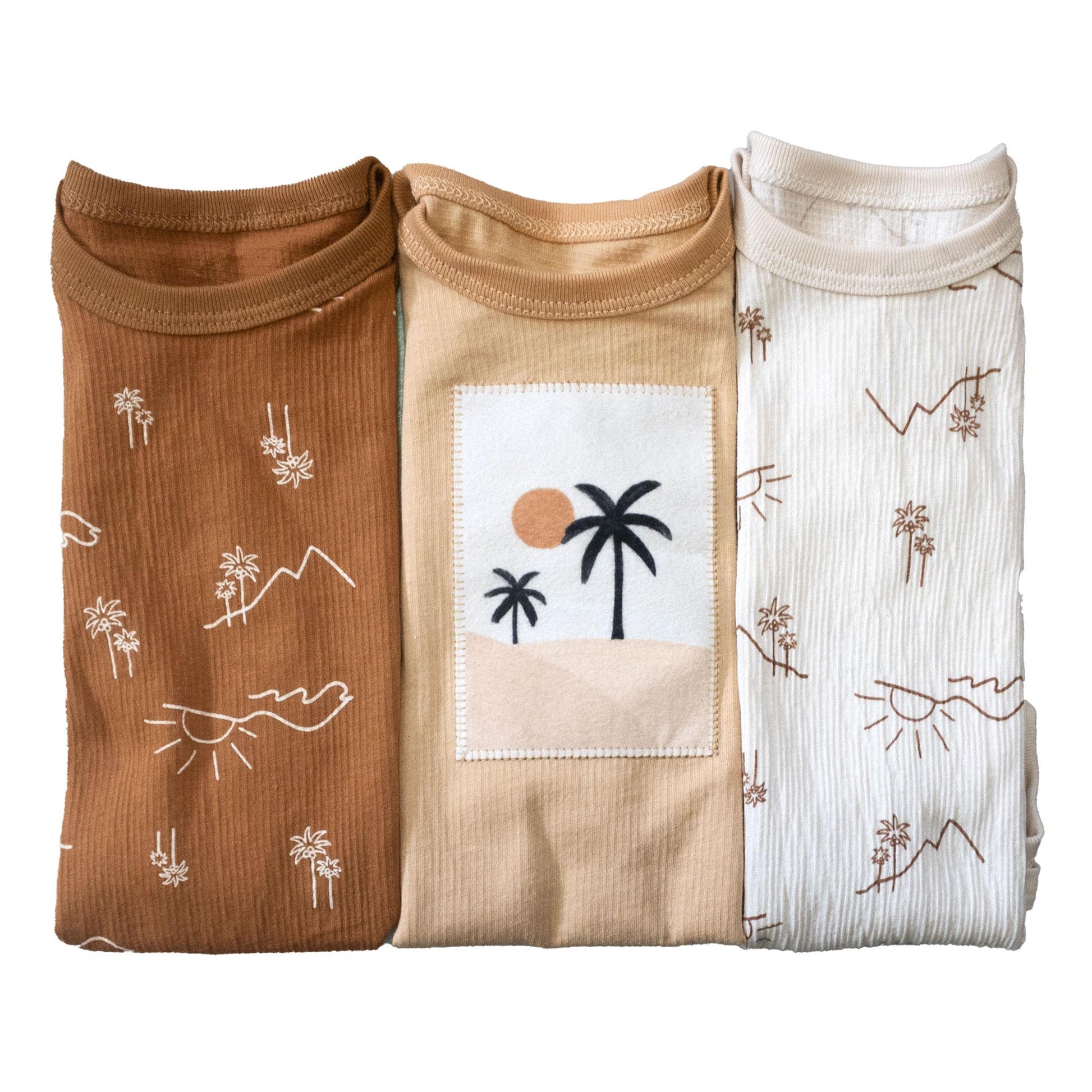 Kutia që përmbanë tri trupore është ndër produktet që nevojitet më së shumti tek foshnjet. Të gjitha jan të punuara nga 100% pambuk dhe vishen lehtësisht si nga lart ashtu edhe nga posht.