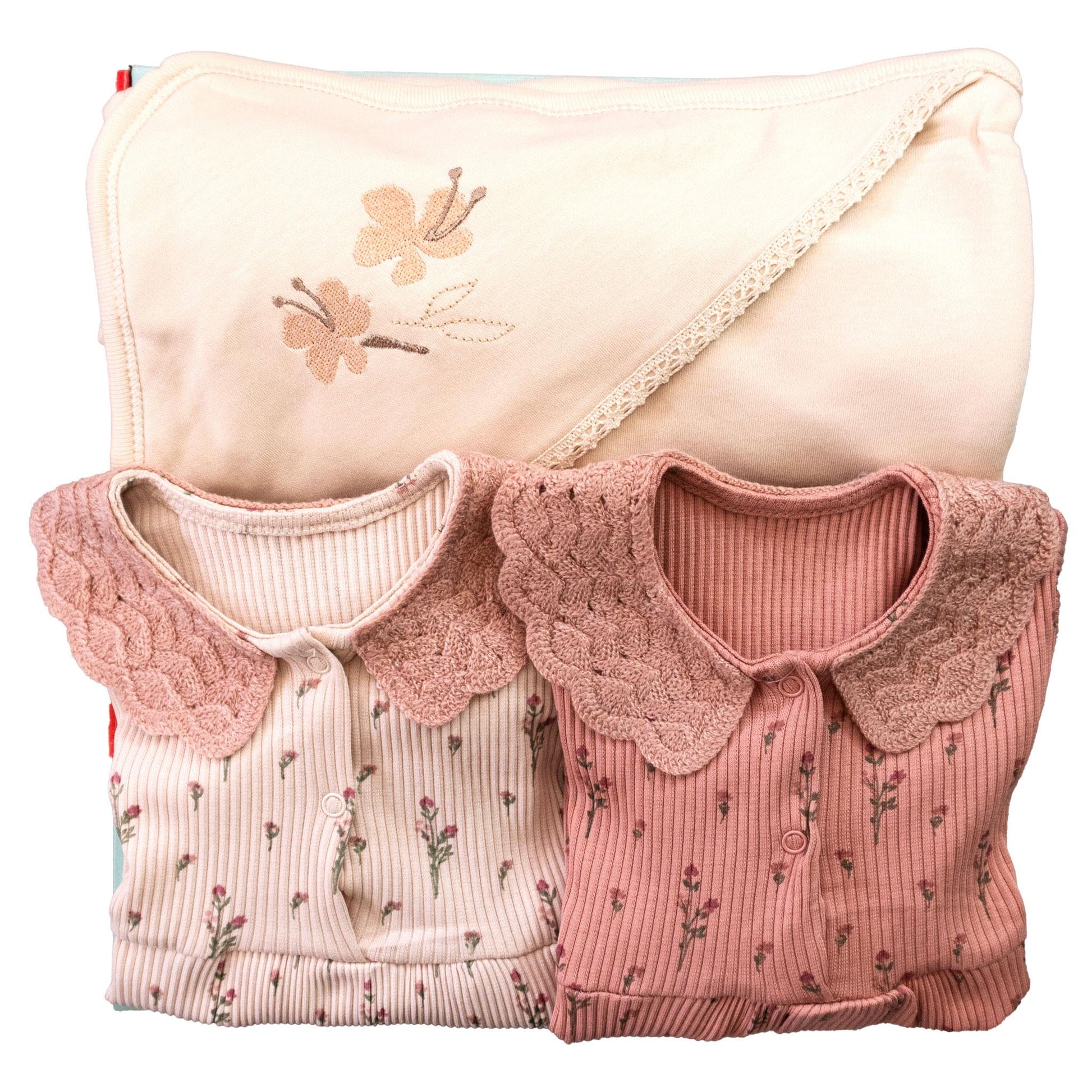 Ju njoftojmë me kutinë tonë të mrekullueshme "Rose Flower", një paketë e cila sjellê gëzim, e krijuar posaçërisht për foshnjën tuaj të sapolindur! Ky set magjepsës përmban një batanije shumë të butë për foshnjën dhe tri palë shpiohze të bukura me ngjyra të ndryshme. Kjo është një dhuratë e përsosur për të mirëpirtur ardhjen e saj me dashuri dhe ngrohtësi.