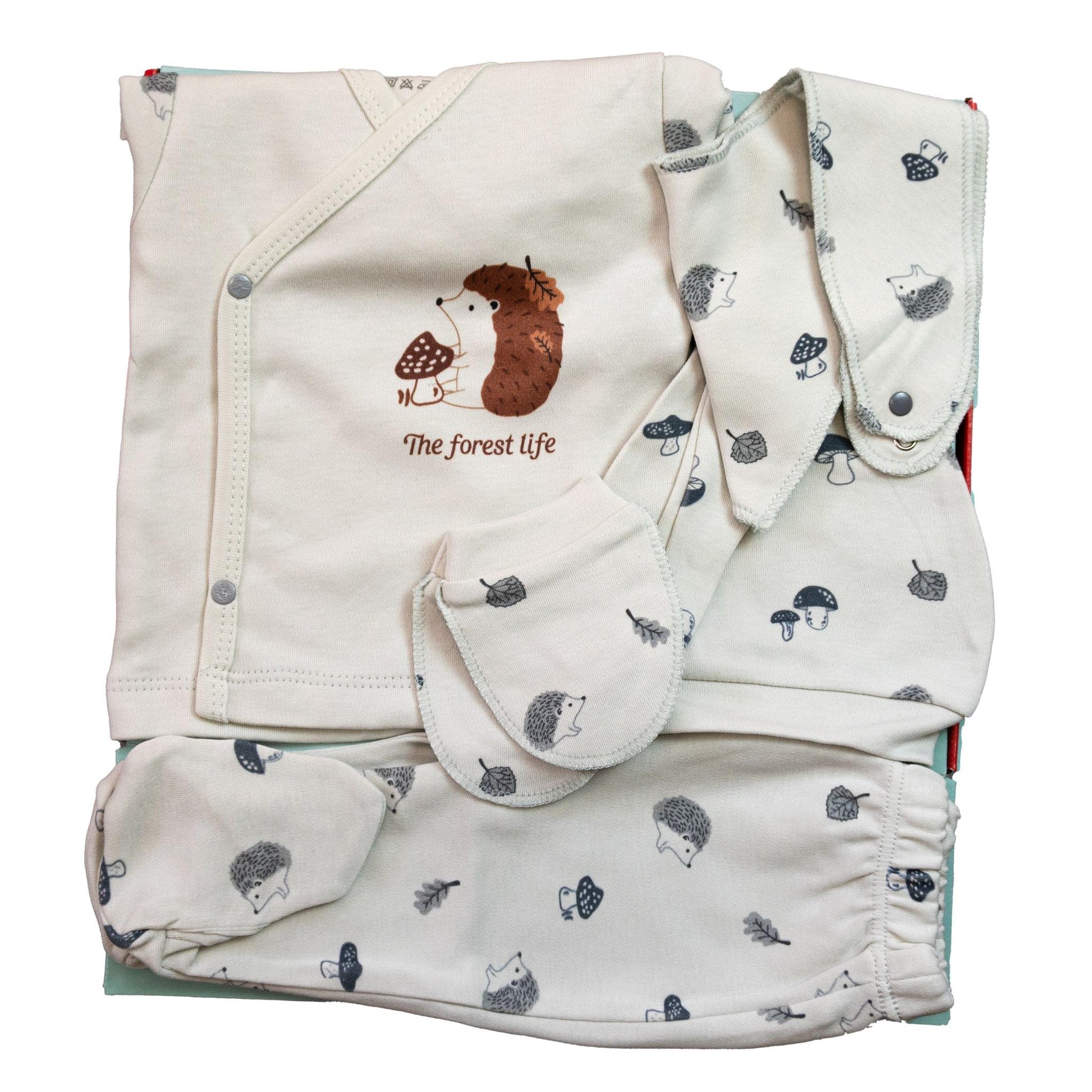 Përqafo ngrohtësinë e këndshme me Kutinë e Dhuratave me konceptim "forest life", një dhuratë perfekte për foshnjën tënde. Ky set i magjishëm dhuratash përmban produkte esenciale për foshnjën në ngjyra të buta dhe të ngrohta, duke kombinuar rehati dhe stil. Kjo kuti përmban një napë me një ngjyrë të veçantë të cilën mund ta përdoni për funksione të ndryshme si dhe permbanë të gjitha produktet që do të ju duhen për një të posalindur.