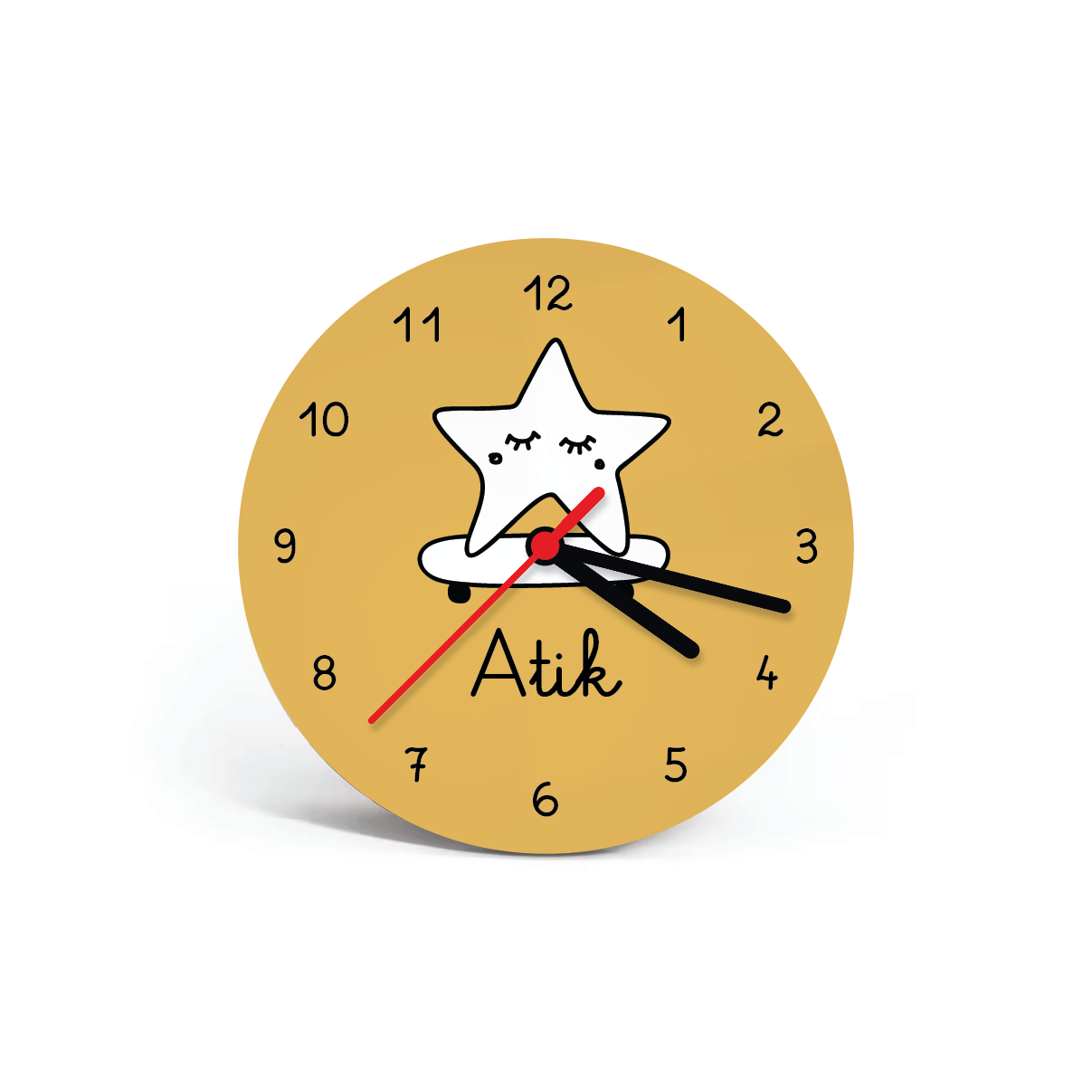Shtoni një prekje magjike në dhomën e djalit tuaj me këtë orë muri të personalizuar. Zgjidhni ngjyrën, figurën dhe shtoni emrin për ta kthyer në një produkt unik dhe të veçantë.