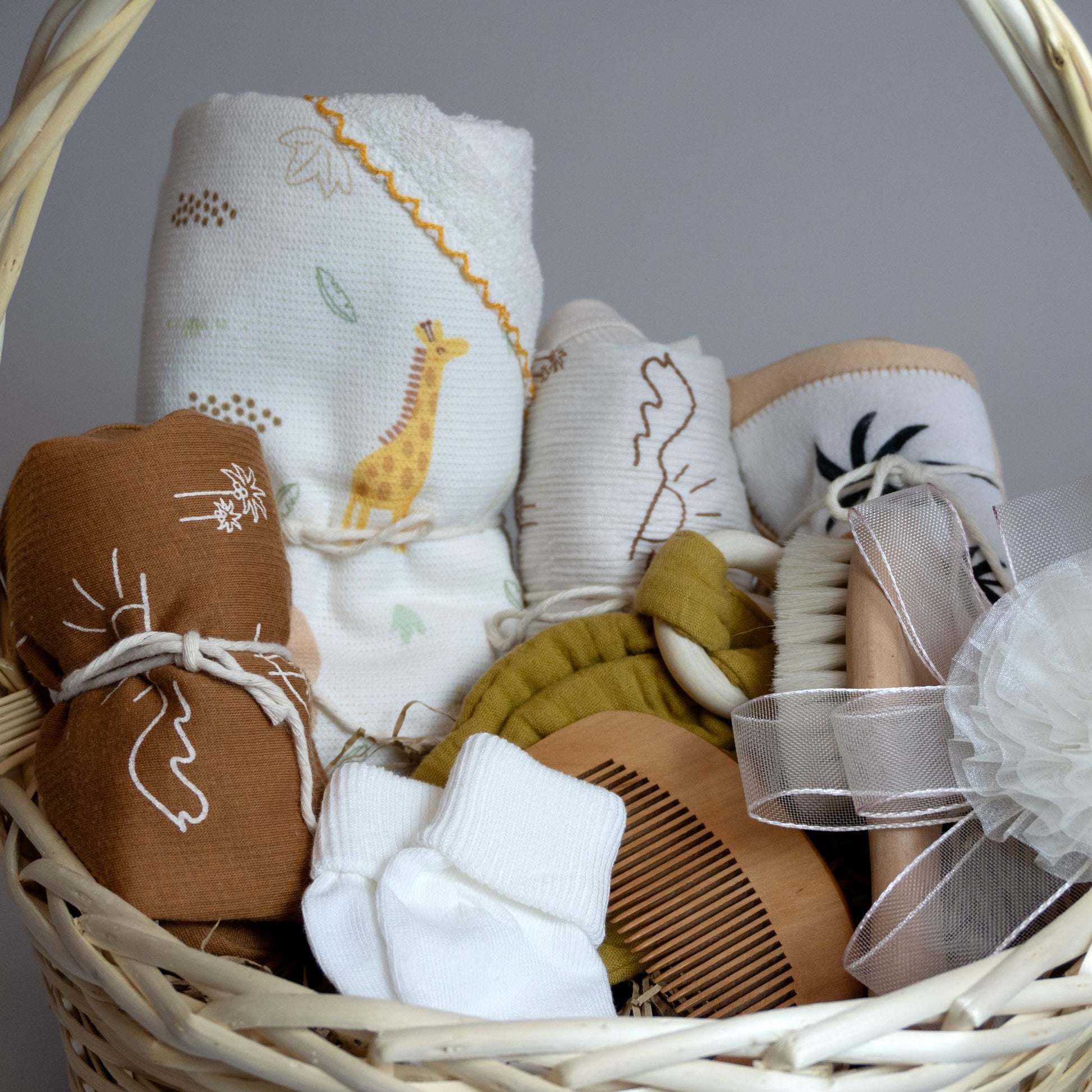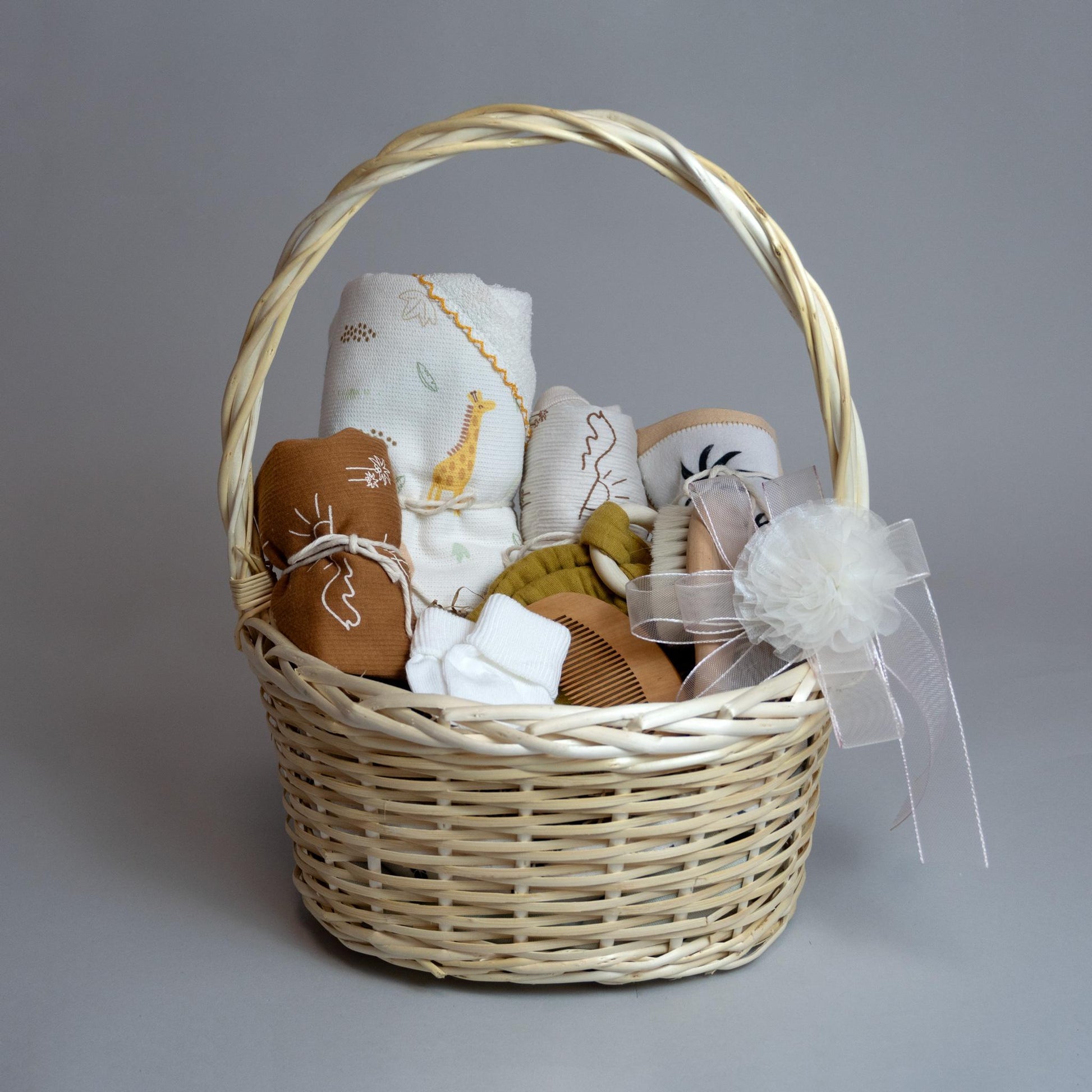 Një shportë e madhe e mbushur me dhurata të veçanta. Të gjitha produktet jan të përzgjedhura në mënyrë unike dhe të përshtatshme për foshnjën.