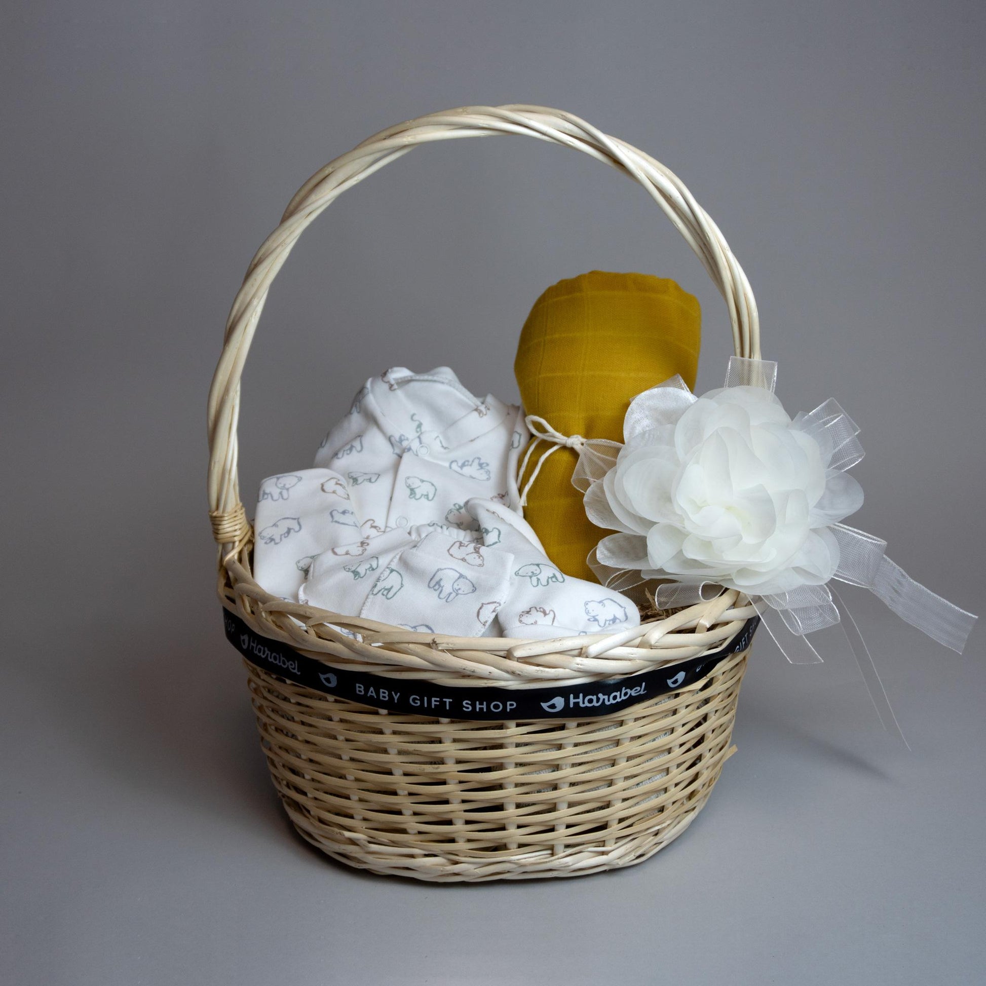 Një shportë e madhe e mbushur me dhurata të veçanta. Të gjitha produktet jan të përzgjedhura në mënyrë unike dhe të përshtatshme për foshnjën.