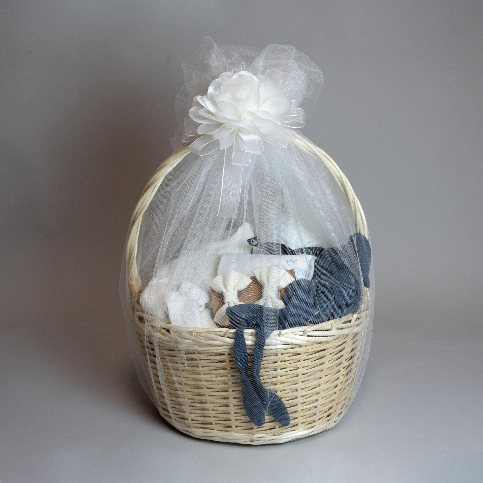 Një shportë e madhe e mbushur me dhurata të veçanta. Të gjitha produktet jan të përzgjedhura në mënyrë unike dhe të përshtatshme për foshnjën.