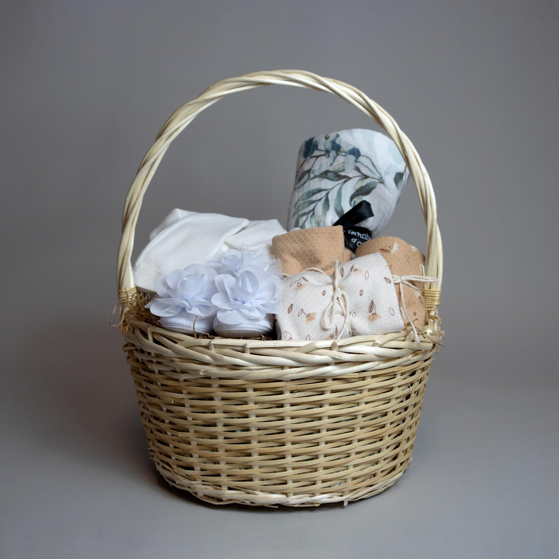Një shportë e madhe e mbushur me dhurata të veçanta. Të gjitha produktet jan të përzgjedhura në mënyrë unike dhe të përshtatshme për foshnjën.