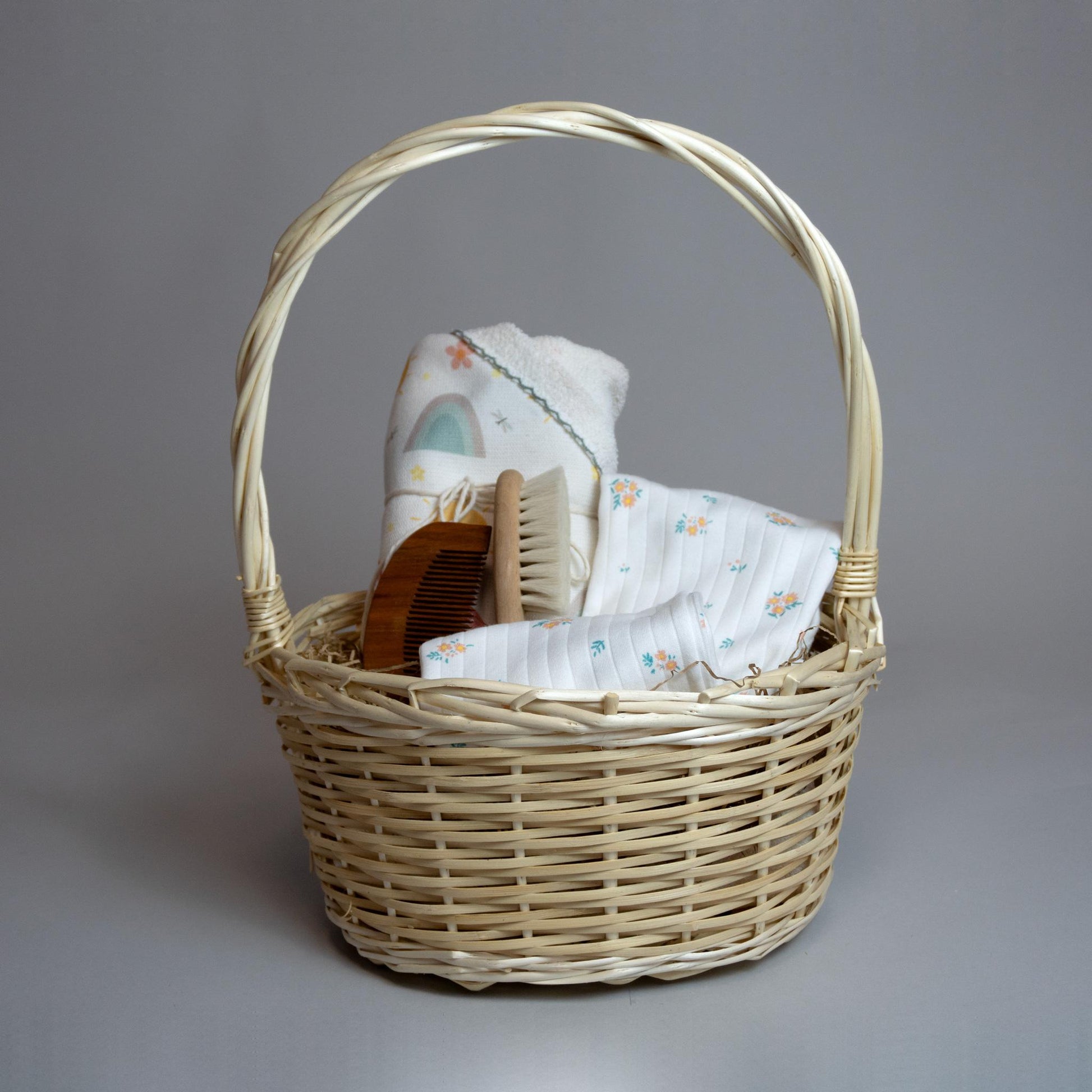 Një shportë e madhe e mbushur me dhurata të veçanta. Të gjitha produktet jan të përzgjedhura në mënyrë unike dhe të përshtatshme për foshnjën.